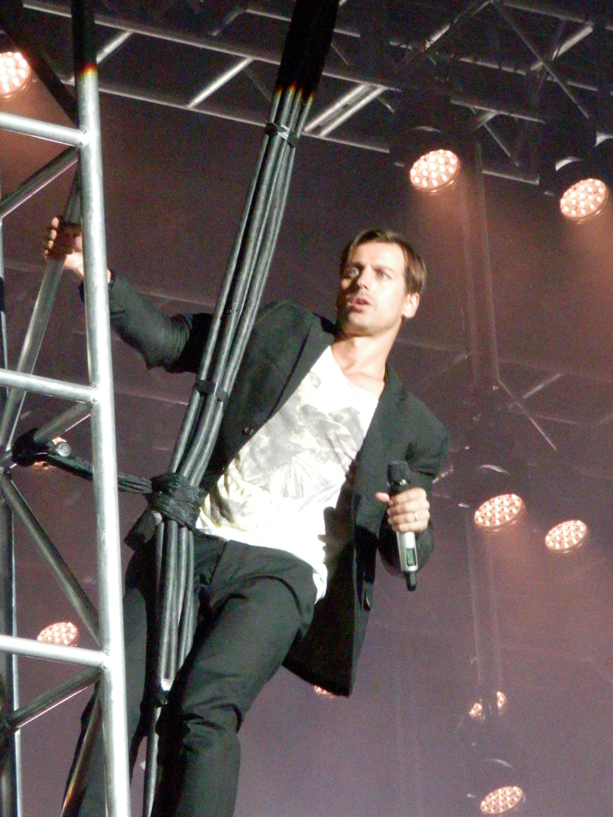 The show was actually really good. It started out a little rocky with some new tracks that not many in the crowd knew but soon enough they got into huge hits like "Innocent" and "Superman's Dead" that really got both the crowd and the band into it. Lead singer Raine Maida actually has a great voice (the only prior live things I had seen by them was a performance at Live Earth which was not very good...but live earth in general was a pile of dog shit so...) and is quite charismatic, telling several stories and even climbing up the side of the stage to sing one song (pictured above). The rest of the band was really tight and rocked hard.